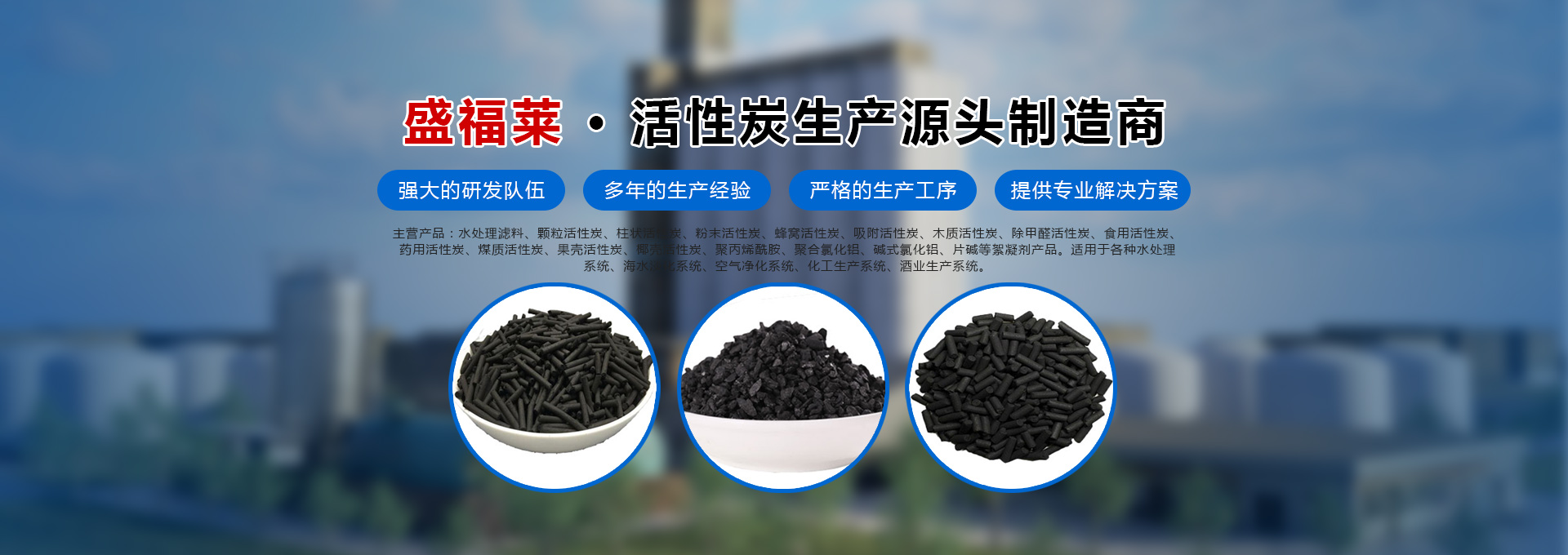 河南盛福萊環(huán)??萍加邢薰臼且患覍I(yè)銷售各種規(guī)格型號(hào)活性炭、污水處理藥劑、碳源的公司,位于中原凈水材料基地-鞏義市,是從事各類活性炭及相關(guān)產(chǎn)品生產(chǎn)、研發(fā)及銷售的一體化企業(yè)。主營(yíng)產(chǎn)品:水處理濾料、顆粒活性炭、柱狀活性炭、粉末活性炭、蜂窩活性炭、吸附活性炭、木質(zhì)活性炭、除甲醛活性炭、食用活性炭、藥用活性炭、煤質(zhì)活性炭、果殼活性炭、椰殼活性炭、聚丙烯酰胺、聚合氯化鋁、堿式氯化鋁等絮凝劑產(chǎn)品、碳源,適用于各種水處理系統(tǒng)、海水淡化系統(tǒng)、空氣凈化系統(tǒng)、化工生產(chǎn)系統(tǒng)、酒業(yè)生產(chǎn)系統(tǒng)。服務(wù)于各種大、中、小型自來水廠、石油化工廠、造紙印染廠、鋼鐵廠、發(fā)電廠、食品廠、冶金廠等行業(yè)。河南盛福萊環(huán)保科技有限公司創(chuàng)立以來